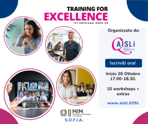 Aisli Training for Excellence Un programma online di Teacher Development da parte di formatori internazionali d’eccellenza Sei un docente, investi nel tuo futuro! Training for