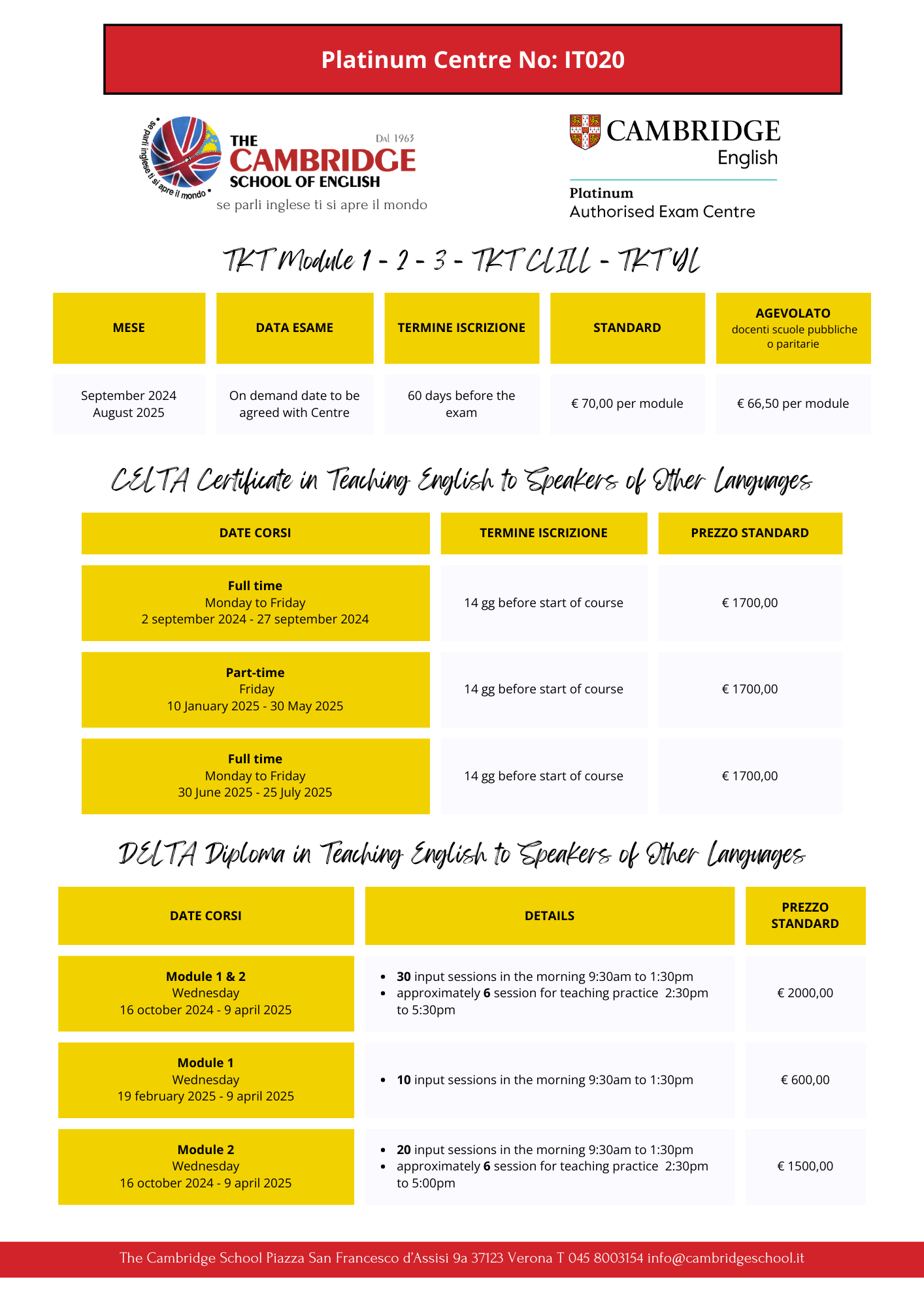 Obiettivi del corso conseguimento della certificazione CELTA (Certificate in Teaching English to Speakers of Other Languages) di University of Cambridge